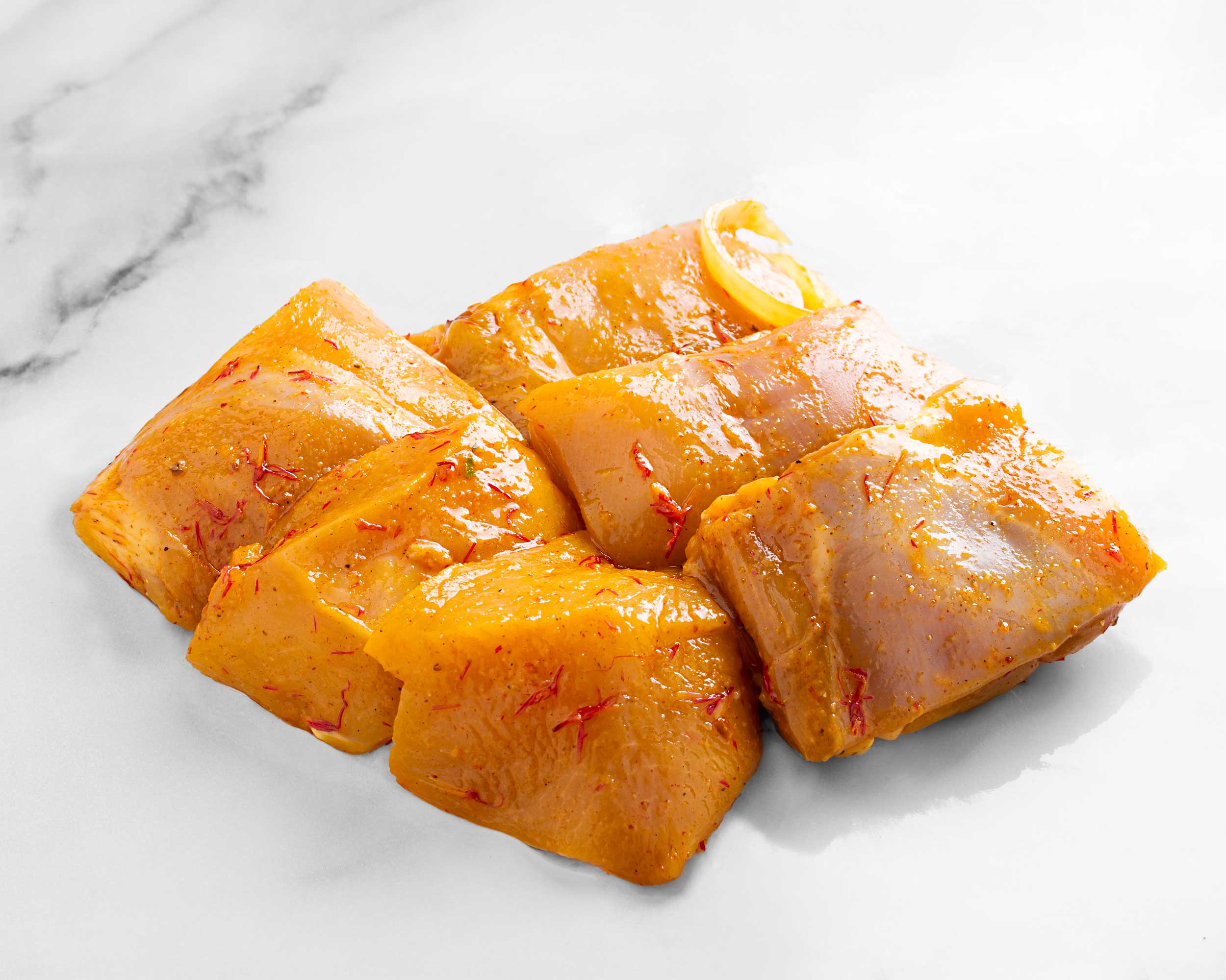 ران/ سینه بدون استخوان مرغ، پیاز، زعفران، روغن، نمک، فلفل، آبلیمو